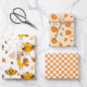 Conception amusante pour la saison d'automne et de Thanksgiving. Jolie collection de dindes, citrouille, et chèques orange et blanc pour ce trio d'enveloppement cadeau.