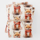 Wrapping paper sheets with an illustration of a reddish orange fox pup. A subtle smile on his face. Wearing a nice red scarf for warmth.