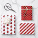 Ensemble de feuilles de papier d'emballage avec des motifs à thème coccinelle en rouge, noir et blanc. Un avec des coccinelles, un avec des pois, et un avec des rayures. Parfait pour les anniversaires et baby showers d'enfants !