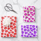 Cet ensemble de 3 papiers d'emballage design dispose d'un motif de coeur léopard rouge, rose et violet.