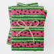 Envelopper les feuilles de papier avec un motif de pastèque mignon. Croûte verte en couches de rayures avec une couche de rayures roses avec des graines noires à l'intérieur. Amusement et design estival.