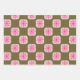 Feuille De Papier Cadeau Cute Retro Boho Checkerboard Fleur vert rose