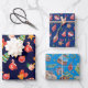 Cute whimsical blue Christmas wrapping paper sheets set of 3.