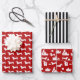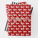 Festive vacances Dachshund chien silhouette motifs en rouge et blanc avec une audacieuse feuille d'accent rayé noir et blanc pour compléter le jeu de papier enveloppant.