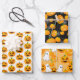 Collection éffrayante de trois feuilles de papier d'emballage motif déplaisant avec toile d'araignée, Jack-o'-lantern, araignée, citrouille et fantôme.