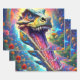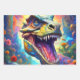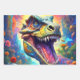 Feuille papier d'enveloppement T-Rex Imaginaire Dinosaure. Un design coloré pour enfants ou adultes enveloppant des feuilles de papier avec de belles couleurs vives,
