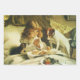 Suspense (alias Dire nos prières) (1894) de Charles Burton Barber est une peinture de portrait de famille d'art fin victorien vintage. Un jeune enfant et ses animaux de compagnie (un chien terrier Jack Russell et un chat tigré mignon) récitant les grâces au lit avant de manger le petit déjeuner.