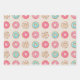 Ce mignon beigne et arroser le design motif sports plusieurs saveurs différentes. Il y a de la glace rose avec des tourbillons, du glaçage bleu et rose avec des arroses, et même de la puce chocolat vanille. Tout sur un arrière - plan de couleur avoine pour équilibrer tout ce doux. Yum !