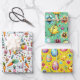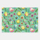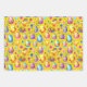 A Colorful Wrapping Paper Sheet Set Of Eggs, Chicks, Rabbits, And Flowers On White, Green And Yellow