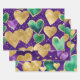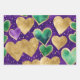 Feuille De Papier Cadeau Elégant coeur violet, vert et or Mardi Gras