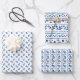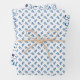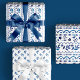 Cet élégant ensemble de papier d'emballage présente des illustrations d'aquarelle d'inspiration folk en bleu cobalt sur un arrière - plan blanc.