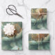A gorgeous minimalist emerald and gold color three sheets of identical wedding wrapping paper, done in one huge image of an emerald and Gold Poppy.