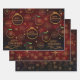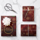 Beau papier d'emballage personnalisé Joyeux Noël sur un arrière - plan rouge avec des nuances noires et un élégant motif de style or avec des petites fleurs, des étoiles, des arbres de Noël et des boules. Ils sont parfaits pour envelopper vos cadeaux et leur attacher une certaine élégance. Vous pouvez mettre à jour tout le texte, modifier le nom de famille ou utiliser le nom d'un couple ou un nom d'entreprise sur la première feuille.