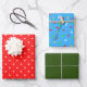 Feuille De Papier Cadeau Elégant motif vert rouge bleu points Noël