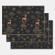 Feuille De Papier Cadeau Élégant Noir & Or Cerf personnalisé Noël