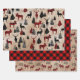Elégant moderne vacances heureux papier d'emballage avec l'orignal, arbres de noël, bûcheron noir et rouge / motif plaid, rennes et chute de neige .