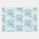 Feuilles de papier d'emballage bleu gris éléphant bébé garçon nom personnalisé
