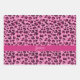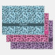 Feuilles papier d'emballage féminin tendance avec motifs d'impression tachetée design rose, violet et bleu clair léopard ; personnalisable en ajoutant trois noms ou textes différents dans des lettres manuscrites modernes