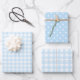 Feuilles papier d'emballage bleu ciel printemps avec design motif Pois et En vichy. Le paquet comprend 3 feuilles de papier d'emballage Mix & Match en bleu bébé. Emballage cadeau avec charme de pays en rose doux. © y.BEE PAPERIE #ybeepaperie #babyblueginghamwrappingpaper #eastergiftwraps #blueeasterwrapping paper