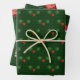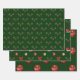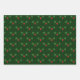 Nous avons ici une belle feuille de papier d'emballage prêt à l'emploi pour la saison des fêtes. Le premier drap contient des baies sèches et des flocons de neige sur un arrière - plan en vichy vert. La deuxième feuille est ornementée de baies sèches, arcs rouges et casquettes de Père Noël, avec des flocons de neige sur un arrière - plan en vichy vert. La troisième feuille de l'ensemble présente un design de Noël avec des ornements et les mots "Feliz Navidad" avec des flocons de neige sur un arrière - plan en vichy vert.