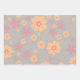 Ensemble de 3 feuilles de papier d'enveloppement de fleurs rétro uniques. Un mélange de gris avec des couleurs bordeaux et blanches, parfait pour les amateurs de couleurs neutres. Branché, moderne et élégant avec le motif vintage orange de couleur fleurie.