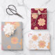 Feuille De Papier Cadeau Ensemble de 3 fleurs rétro uniques