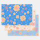 Ensemble de 3 feuilles de papier d'enveloppement à motifs floraux rétro par Dreaming Cocoon. Le mélange et l'association de couleurs calmes de bleu vif, d'orange doux et de bleu doux créent une belle harmonie. Fleurs vintages de couleur orange motif aux teintes sérénité, enveloppements cadeaux parfaits pour ceux qui aiment les fleurs et romantique au coeur!