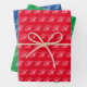 Créez votre propre papier d'emballage rouge, vert et bleu de Noël à monogrammed pour trois amis. Customisez l'arrière - plan avec sa couleur préférée sur chaque feuille de papier cadeau. Il y a quelques beaux styles de script de police dans le système.