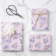 Feuilles de papier d'enrobage rose de l'oiseau et du papillon Ensemble de 3 feuilles