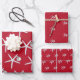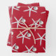 Starfish et motif ornement feuilles d'emballage de Noël. Papier rouge de vacances avec étoiles de mer blanches. Chaque feuille de l'ensemble a un motif étoilé de taille différente. Chaque étoile de mer a un petit ornement blanc argenté accroché à l’une de ses jambes. Parfait pour offrir des cadeaux dans un climat chaud.