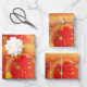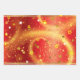 Feuille De Papier Cadeau Étoiles d'or étincelles et lumière sur rouge