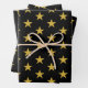 Feuille De Papier Cadeau Étoiles d'or sur noir