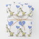 Feuille De Papier Cadeau Famille Giraffe Avec Ballons Coeur Bleu