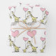 Feuille De Papier Cadeau Famille Giraffe Avec Ballons Coeur Rose