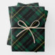Feuilles de papier d'emballage élégantes et festives (série de trois) avec nos motifs de plaid vert foncé design. Papier d'emballage parfait pour les amateurs de plaid. Oeuvre De La Papeterie Moodthologique.