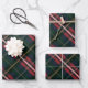 Feuilles de papier d'emballage stylées et festives (série de trois) avec notre design motif plaid rouge foncé et vert élégant. Papier d'emballage parfait pour les amateurs de plaid. Oeuvre De La Papeterie Moodthologique.