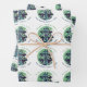 Festive Arbre de Noël Vert Fêtes de famille Envelopper les feuilles de papier. Arbre de Noël décoré festif dans un cadre circulaire, entouré d'un joyeux texte de Noël, nom de famille et année - personnalisez l'enveloppement cadeau.