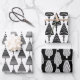 Joli papier d'emballage motif de Noël noir et blanc, idéal pour l'emballage cadeau de vacances.