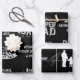 Ces papiers d'emballage en Fête des pères noir et blanc sont personnalisables en ajoutant le nom du père, le nom des enfants, la date ou tout autre message que vous aimez. Deux des papiers d'emballage sont tous du texte tandis que l'autre a des silhouettes de pères, d'enfants et de confettis.