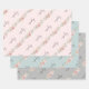 Un trio amusant et festif de draps d'emballage. Tous les draps sont amusants avec la typographie "No peeking". Les draps ont des couleurs arrière - plans de rose de Noël, sauge, vert et gris argenté. Fille Florale Pas De Feuilles De Papier Festive De Pékin.