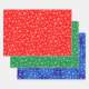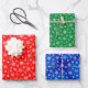 Flammes de neige diverses formes rouge vert bleu élégant Feuilles de papier à envelopper. (Pour la feuille #3, la couleur bleue de l'arrière - plan est légèrement inégale - c'est-à-dire qu'elle fait partie de la conception, et non de l'erreur d'impression. )