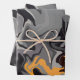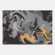 Ce design abstrait combine une palette monochromatique de noir et gris, avec des accents frappants d'orange. Les motifs tourbillonnants suggèrent un flux dynamique et fumé, entrecoupé d'éclats d'énergie enflammée. Le contraste entre les tons neutres et les tons vifs crée un effet visuel intense, évoquant à la fois calme et passion.