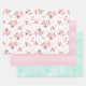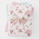 Feuille De Papier Cadeau Fleurs aquarelles rose et menthe et rayures subtil