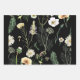 Jardin botanique magnifique ensemble de 3 feuilles de papier d'emballage avec aquarelle bleu et blanc fleurs, herbes et libellules sur des arrière - plans blancs, noirs et verts._
