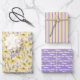 Fête des Mères spéciale avec ce papier d'emballage fleuri jaune et violet. Un papier rayé violet et jaune, ainsi qu'un papier violet personnalisable vous permettent de faire des cadeaux emballés de maman aussi spéciaux et uniques que les cadeaux eux-mêmes !