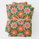 Feuille De Papier Cadeau Fleurs Rétro Vert Orange Rose Cute