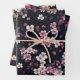 Feuille De Papier Cadeau Fleurs Sakura Roses Noires, Design Motif,