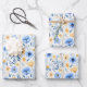 Papier d'emballage fleurs sauvages bohème bleu jaune. Trois feuilles par paquet. Idéal pour les anniversaires, les baby showers, les mariages et les fêtes de mariage.