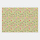 Feuille De Papier Cadeau Fleurs sauvages vert sauge et pois blancs
