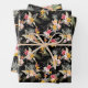 Feuille De Papier Cadeau Fleurs tropicales d'ananas noires